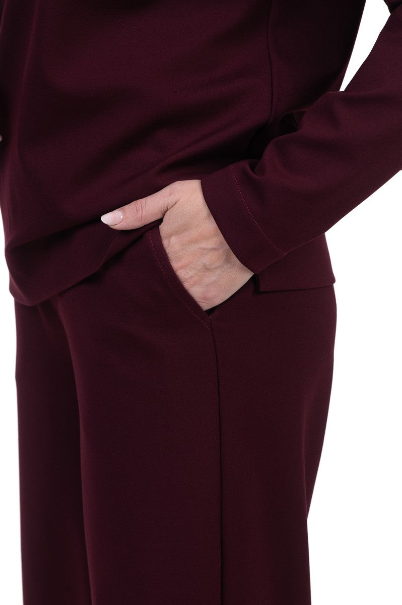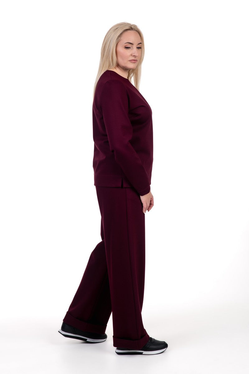 Elegantiškas, komfortiškas, stilingas - taikliai, bordo spalvos punto trikotažo kostiumėlį apsakantys žodžiai. Subtilus derinys sukurtas kasdieniam patogumui, puikiai atitinka šiuolaikinės mados stilių. Patogus, aukštos kokybės audinys, smulkios kostiumėlio detalės, švelnios linijos bei modernios spalvos praturtins Jūsų aprangą. Jie idealūs tiek kasdienai, tiek į pasimatymus su draugais. Kostiumėlis suteiks Jums pasitikėjimo ir komforto jausmą, pabrėš unikalų stilių.
