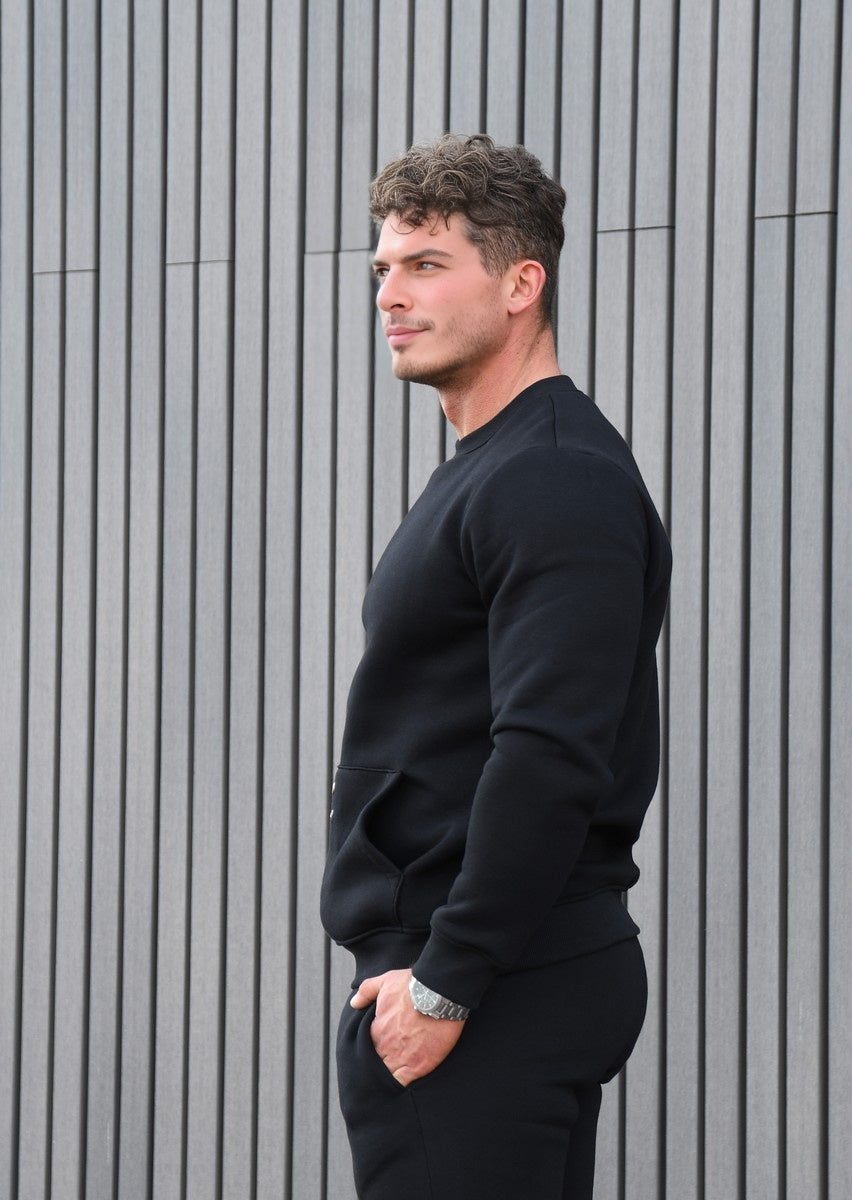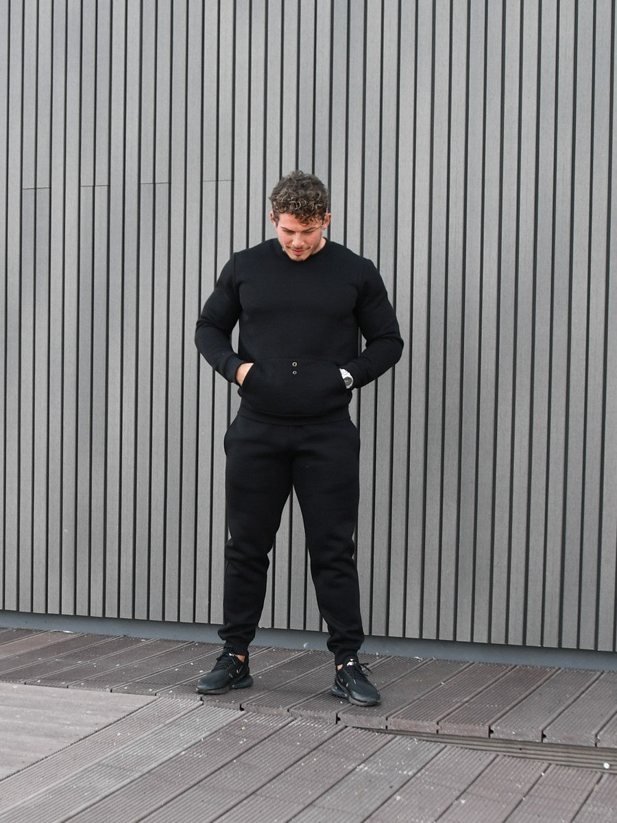 Džemperis juodos spalvos, patogus, šiltas audinys su pūkeliu vidinėje pusėje. Džemperis be gobtuvo ir su kišenėmis.