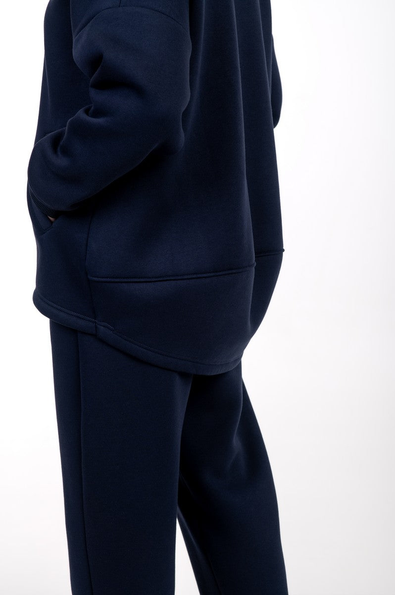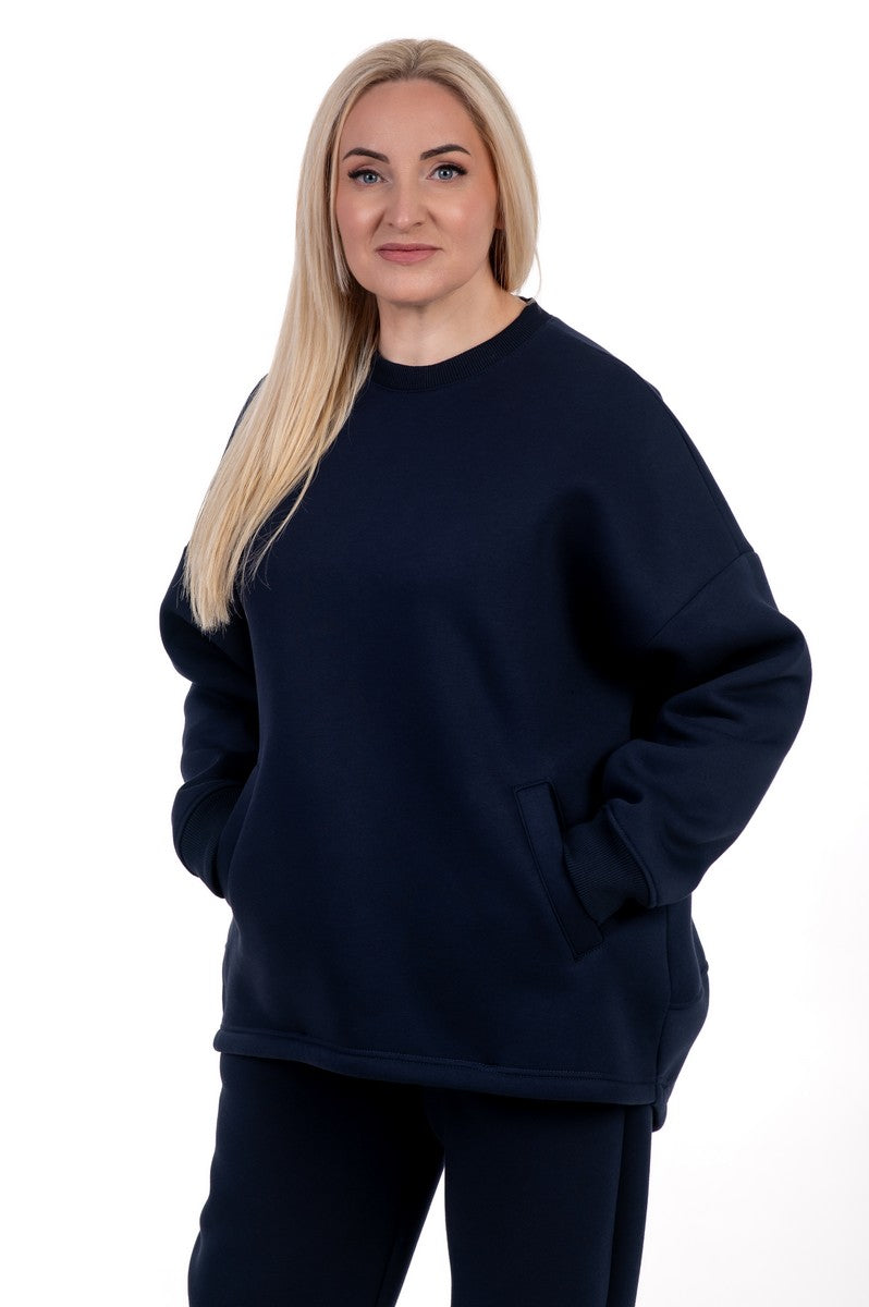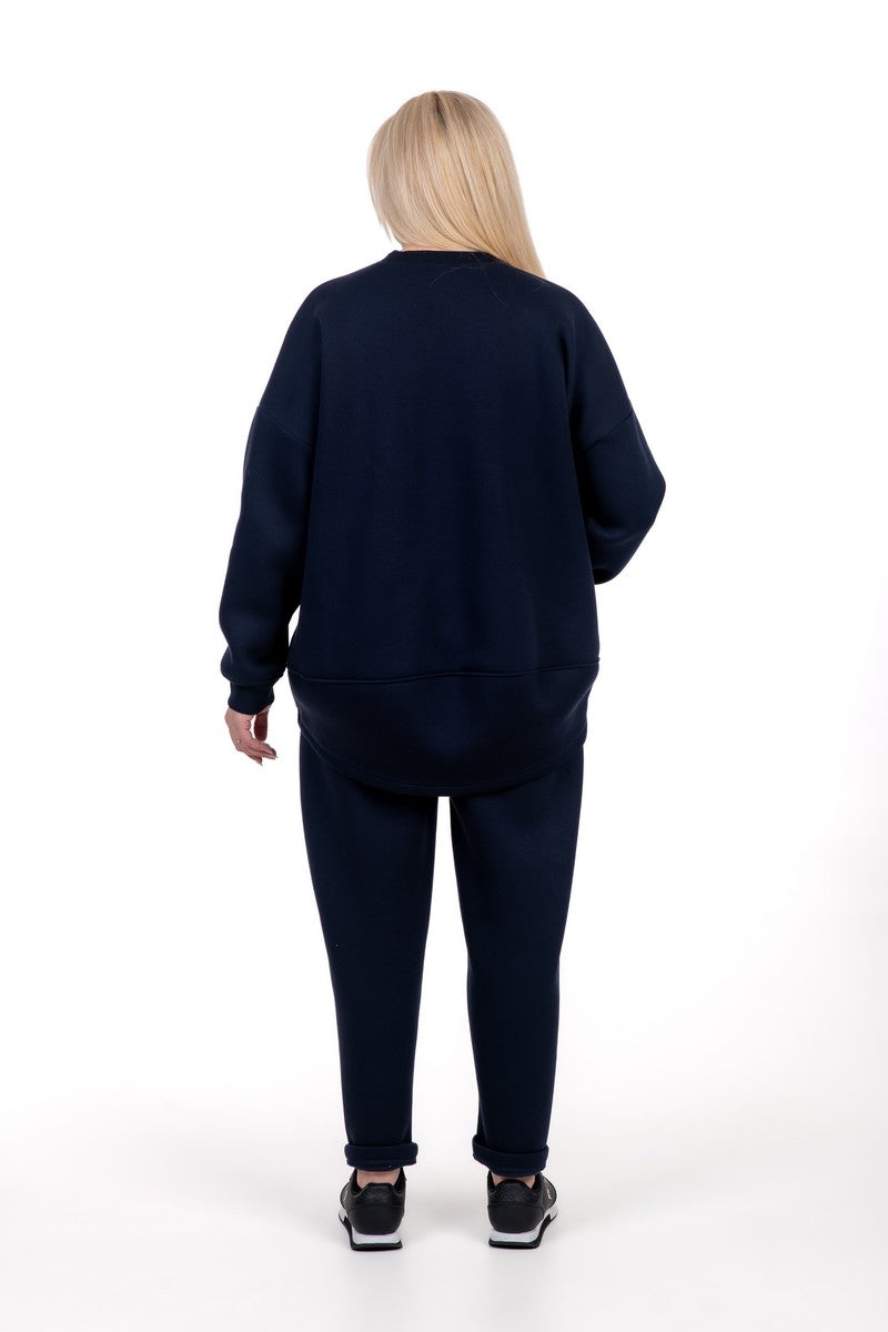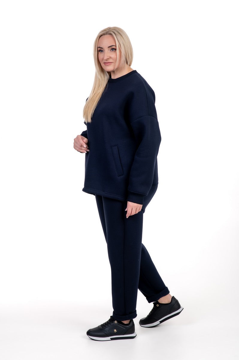 Mėlynas moteriškas kostiumėlis suteikia gaivų ir sportišką įvaizdį, išlaikydamas maksimalų komfortą. Audinys su pūkeliu viduje šildo ir prisitaiko prie kūno, todėl šis komplektas idealus aktyviam laisvalaikiui ar ramiems vakarams namie. Mėlynas atspalvis suteikia energijos ir išsiskiria iš klasikinių tonų. Tai idealus pasirinkimas moterims, ieškančioms universalaus, šilto, stilingo, paslepiančio figūros trūkumus kostiumėlio kasdieniam dėvėjimui.