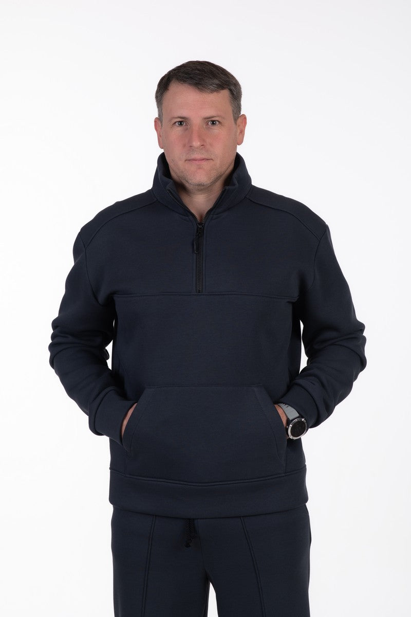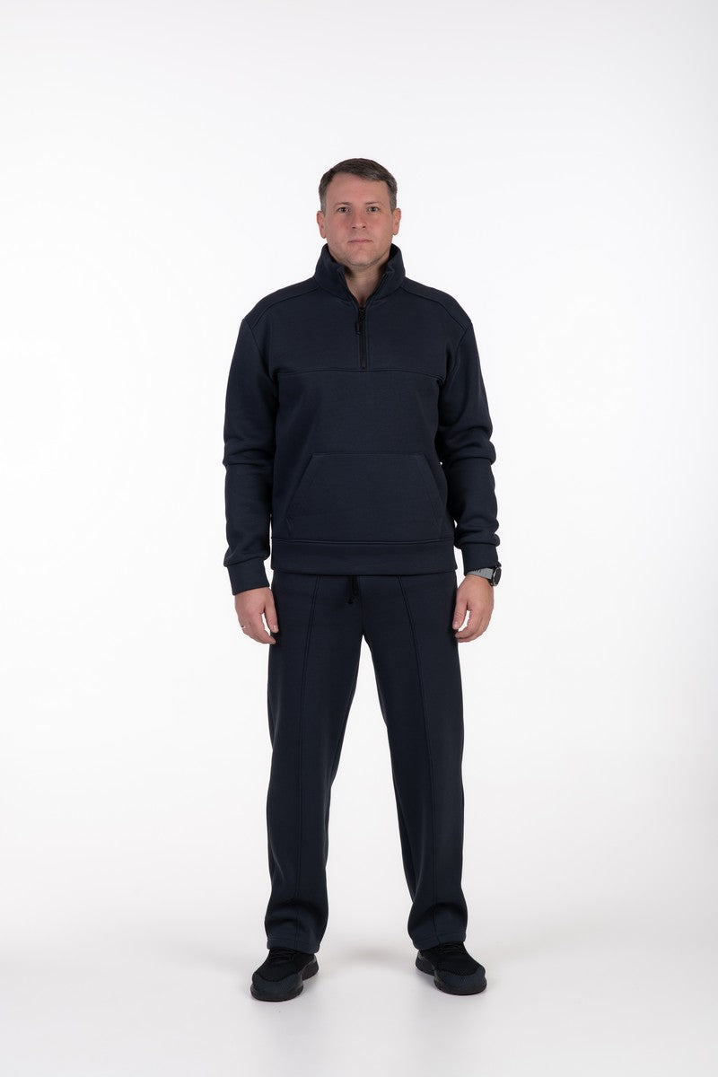 Viršutinė dalis su pusiniu užtrauktuku ir kišene. Kelnės su guma bei raišteliu užtikrina tobulą prigludimą ir judėjimo laisvę.