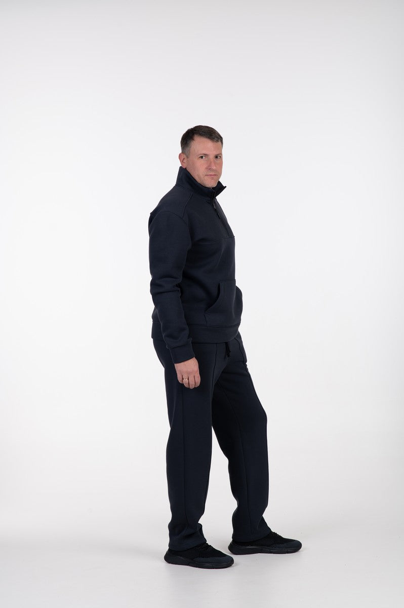 Paprastas, bet išraiškingas - šis pilkos spalvos vyriškas laisvalaikio kostiumas sukurtas vyrui, kuris vertina patogumą ir stilių viename. Minkštas trikotažas su pūkeliu šildo, o minimalistinis dizainas leidžia jaustis užtikrintai bet kur - ar tai būtų poilsis namuose, ar pasivaikščiojimas mieste.